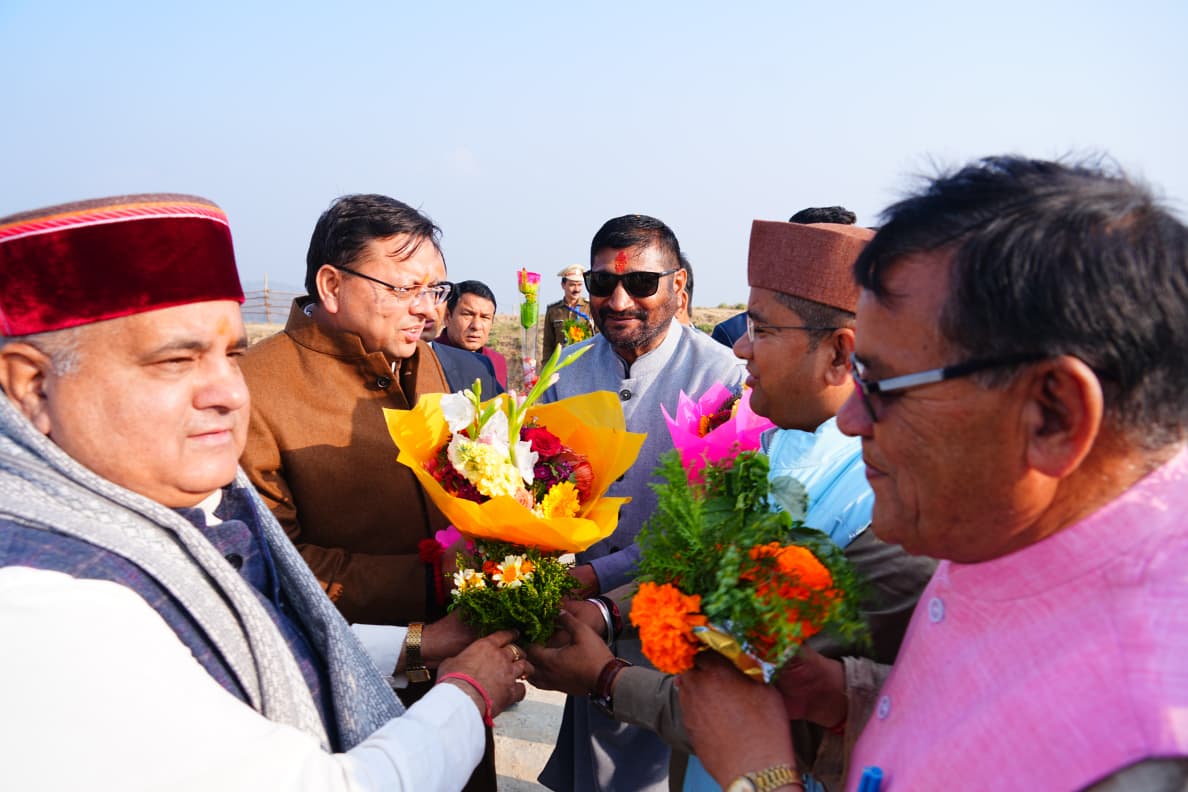 मुख्यमंत्री श्री पुष्कर सिंह धामी के भराड़ीसैंण (गैरसैंण) आगमन पर विधायक श्री अनिल नौटियाल, जिलाधिकारी चमोली श्री गौरव कुमार, एसपी श्री सुरजीत सिंह पंवार एवं स्थानीय लोगों ने उनका स्वागत किया।